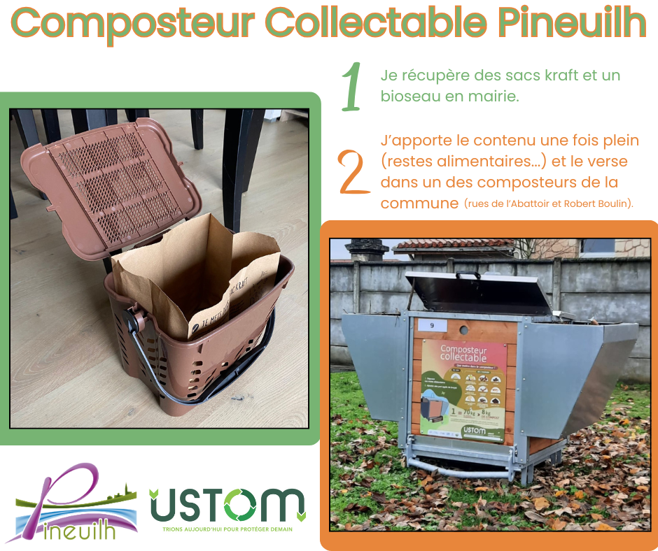 Depuis décembre 2025, la commune dispose de 2 composteurs collectables grutables ouverts à tous les pineulhais 7j/7, 24h/24. Ces équipements sont situés Rues de l'Abattoir et Robert Boulin.