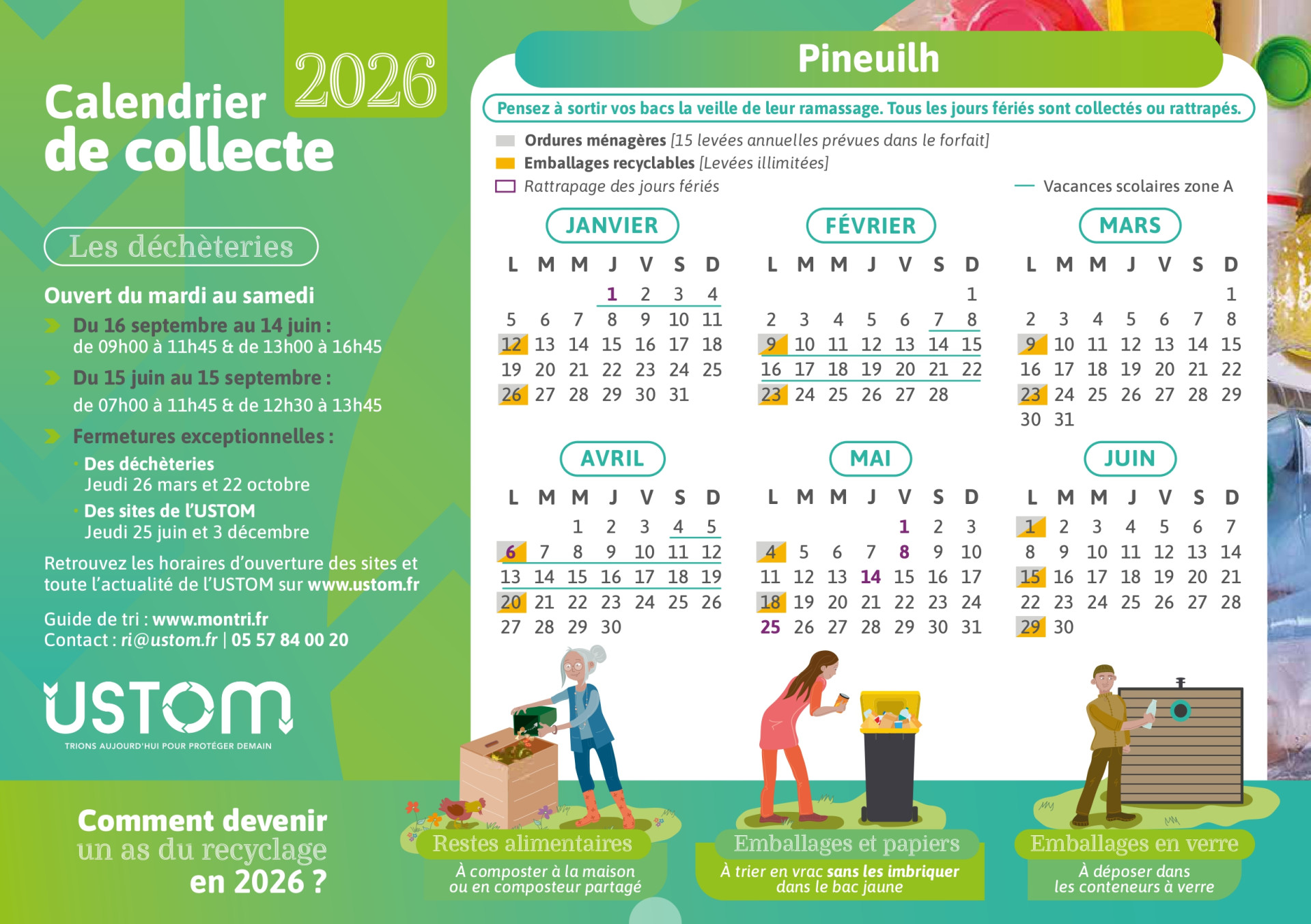 USTOM - Calendrier de collecte 2026 et Horaires déchèteries