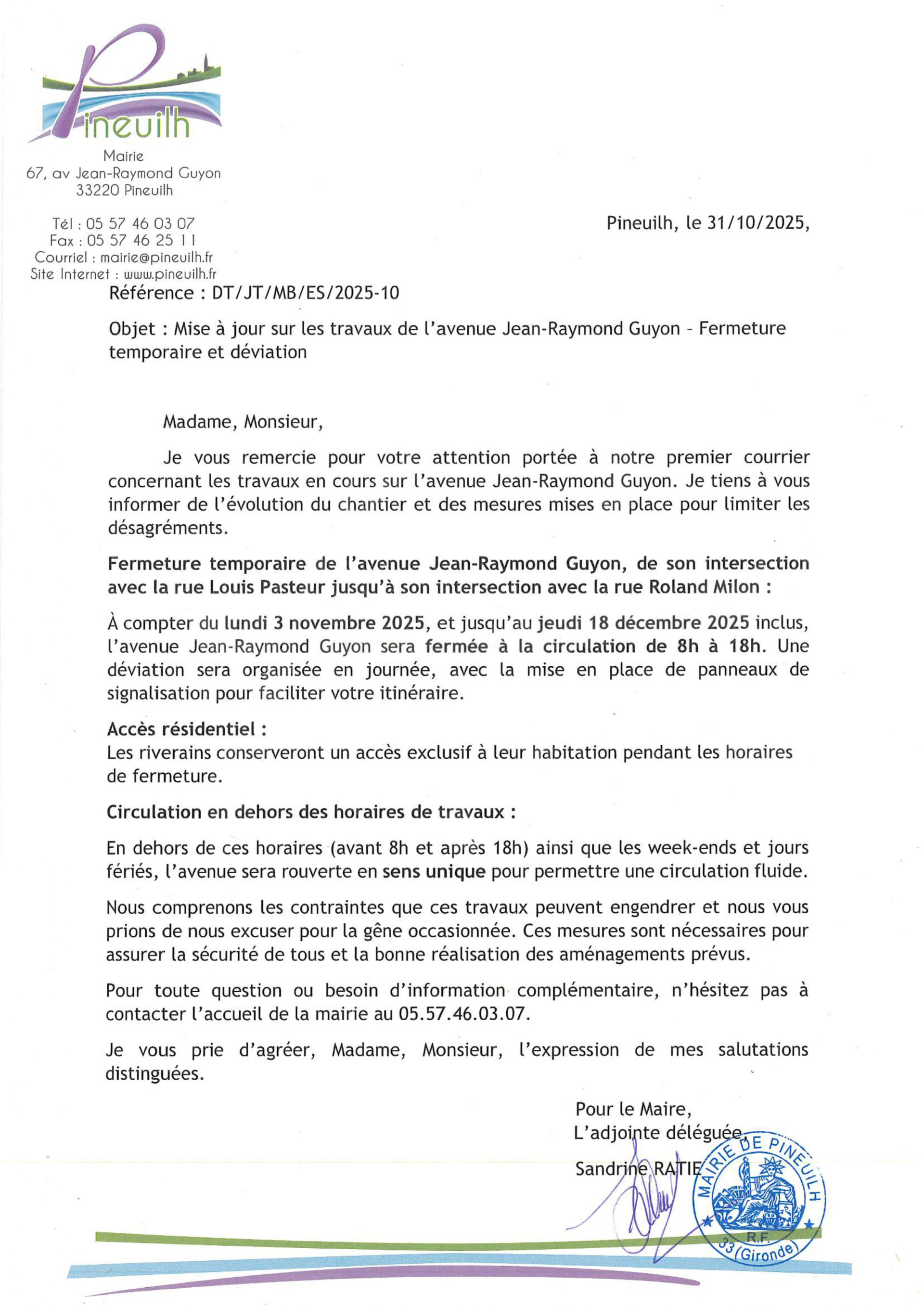Fermeture temporaire de l'avanue Jean-Raymond Guyon.