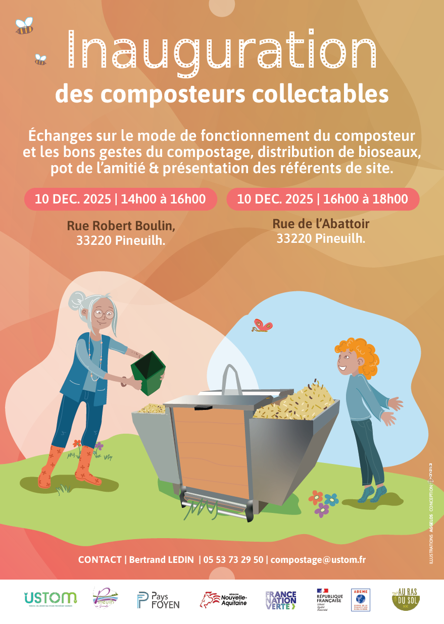 Le 10 dcembre dernier, l'Ustom, la SCIC Au-Ras-du-Sol et la commune de Pineuilh ont inauguré les composteurs collectables installés rue Robert Boulin et Rue de l'Abattoir.